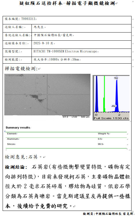 申请快速国际命名与中国科学院陨石捐赠荣誉证书请电:站长雷克斯139-11558898,陨石检测请电:副站长世界陨石市场189-11969162(同微信号)或论坛各管理员,检测报告须在论坛公示(管理员私下检测造成纠纷责任自负),详情请观看论坛公告区。