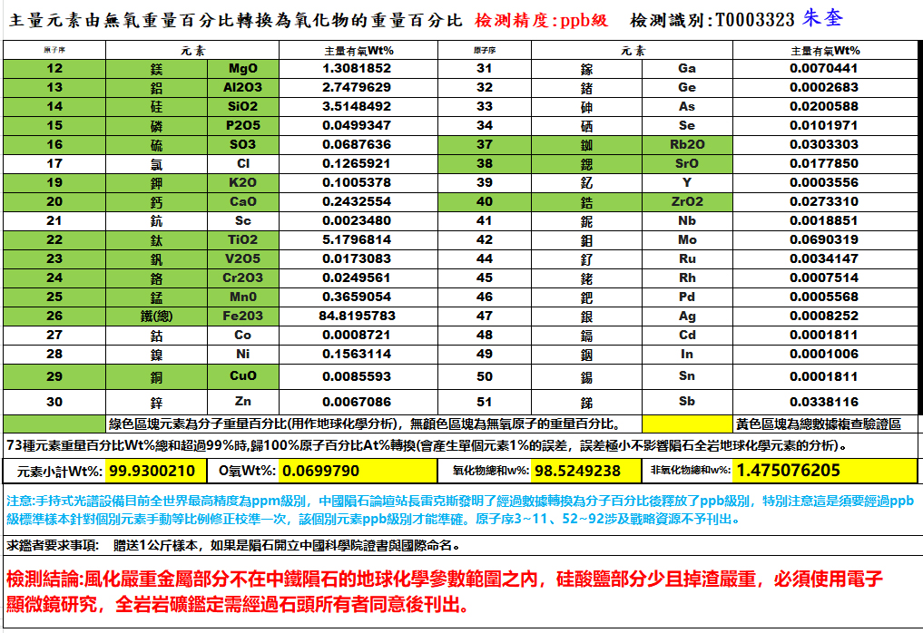 依国际正规陨石科学实验室的做法,陨石鉴定不是含不含镍的问题,也不是镍含量是否符合不同类型陨石地球化学范围的问题,而是必须依照正规岩矿学与地球化学检测它是不是陨石的问题,镍含量可以做为参考,绝不能做为判断是否是陨石的标准,否则不锈钢就会成为陨石了。