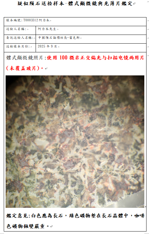中国陨石论坛免费给予岩矿鉴定报告如下: