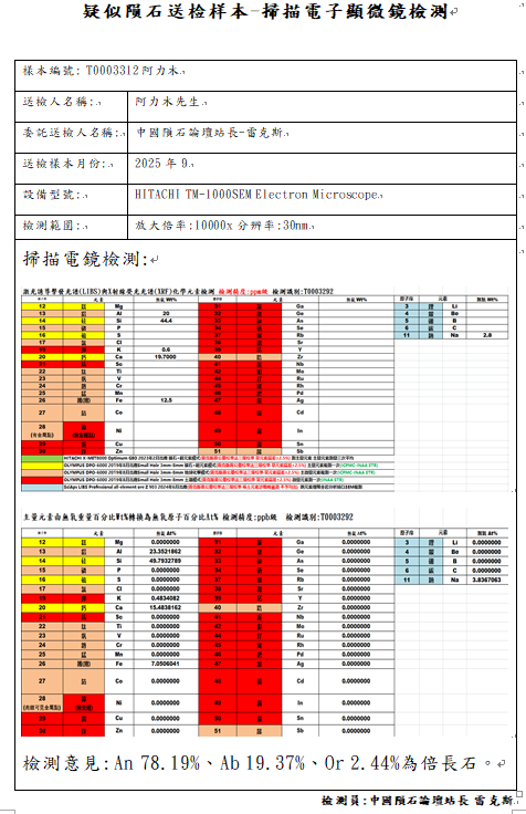 由T0003308与T0003312疑似陨石样本检测结果得知,镍含量并不可靠!