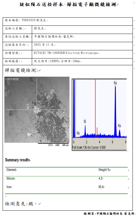 申请快速国际命名与中国科学院陨石捐赠荣誉证书请电:站长雷克斯139-11558898,陨石检测请电:副站长世界陨石市场189-11969162(同微信号)或论坛各管理员,检测报告须在论坛公示(管理员私下检测造成纠纷责任自负),详情请观看论坛公告区。