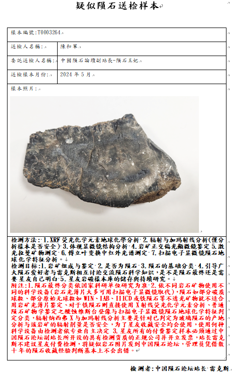 申请快速国际命名与中国科学院陨石捐赠荣誉证书请电:站长雷克斯139-11558898,陨石检测请电:副站长世界陨石市场189-11969162(同微信号)或论坛各管理员,检测报告须在论坛公示(管理员私下检测造成纠纷责任自负),详情请观看论坛公告区。