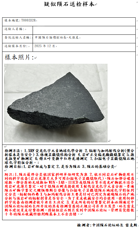 申请快速国际命名与中国科学院陨石捐赠荣誉证书请电:站长雷克斯139-11558898,陨石检测请电:副站长世界陨石市场189-11969162(同微信号)或论坛各管理员,检测报告须在论坛公示(管理员私下检测造成纠纷责任自负),详情请观看论坛公告区。