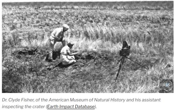 尼宁格和菲金斯(Nininger and Figgins,1933 年)根据陨石坑内回收的陨石物质的分布情况,提出了多撞击的设想。 他们认为,这个 15 米深的坑是由几块较小的陨石在附近撞击形成的,而不是由一块较大的陨石撞击形成的。 Krinov (1971 年)和 LaPaz (1949 年)对俄罗斯锡霍特阿林最大的陨石坑或漏斗的类似情况的描述支持了这一论点的可行性。