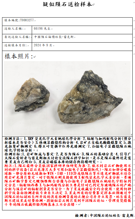 申请快速国际命名与中国科学院陨石捐赠荣誉证书请电:站长雷克斯139-11558898,陨石检测请电:副站长世界陨石市场189-11969162(同微信号)或论坛各管理员,检测报告须在论坛公示(管理员私下检测造成纠纷责任自负),详情请观看论坛公告区。